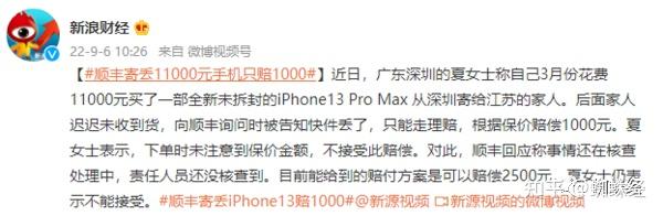 网经资讯 | 顺丰寄丢iPhone13 Pro Max 价值1万多只赔2500元