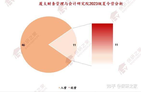 厦门大学财务管理与会计研究院2023级推免招收10人,2023级一共入营46人,优营11人,优营率为23.91%。优营中,36.3%来自985院校,36.3%来自211院校,27.3%来自双非院校!推免门槛较为友善,值得注意的是,优营中双非同学全部来自东北财经大学,人数达3人!