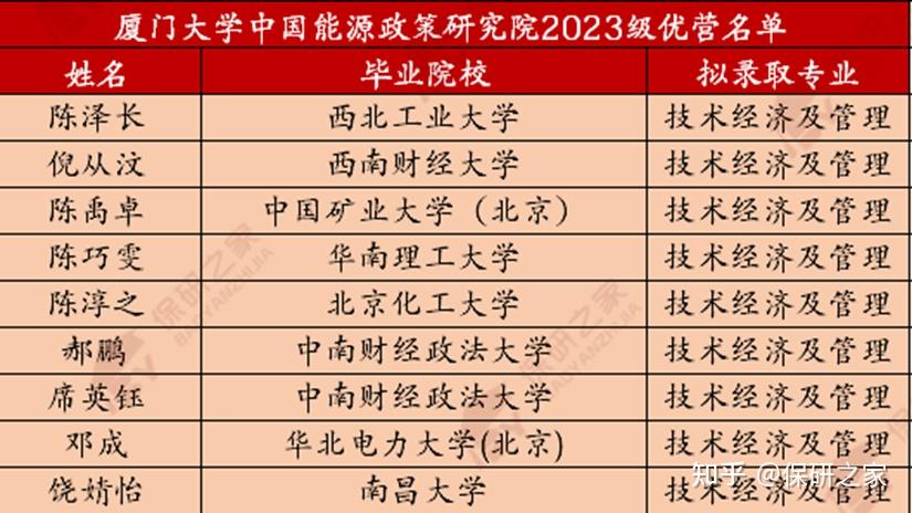厦门大学中国能源政策研究院2023年拟录取推免生专业有技术经济及管理。