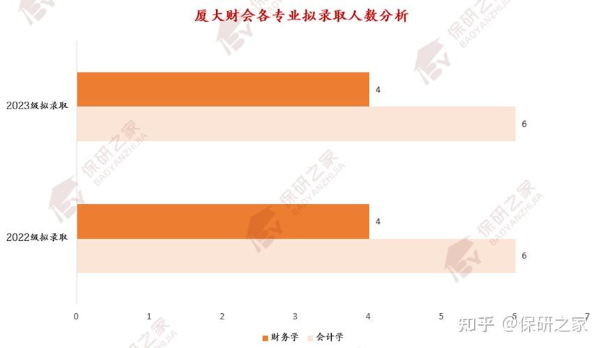 厦门大学财务管理与会计研究院2023级共拟录取10人,从各专业具体来看,厦门大学财务管理与会计研究院2023级各专业中,会计学是招收人数最多的项目,招收6人,其次是财务学,招收4人,整体情况与2022级持平,相对稳定。