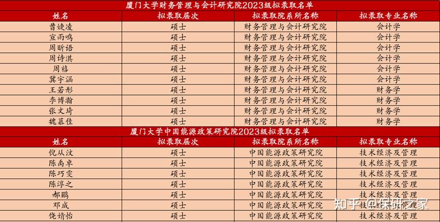 厦门大学财务管理与会计研究院与中国能源政策研究院拟录取名单