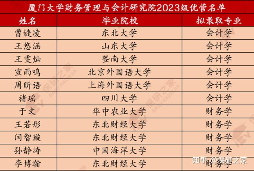 厦门大学财务管理与会计研究院2023级从生源背景上来看,对双非同学虽然较为友好,但也十分看重院校的学科实力,例如东北财经大学虽然是双非院校,但是财会专业较为突出,可见厦门大学财务管理与会计研究院对院校学科实力是有一定的看重的!