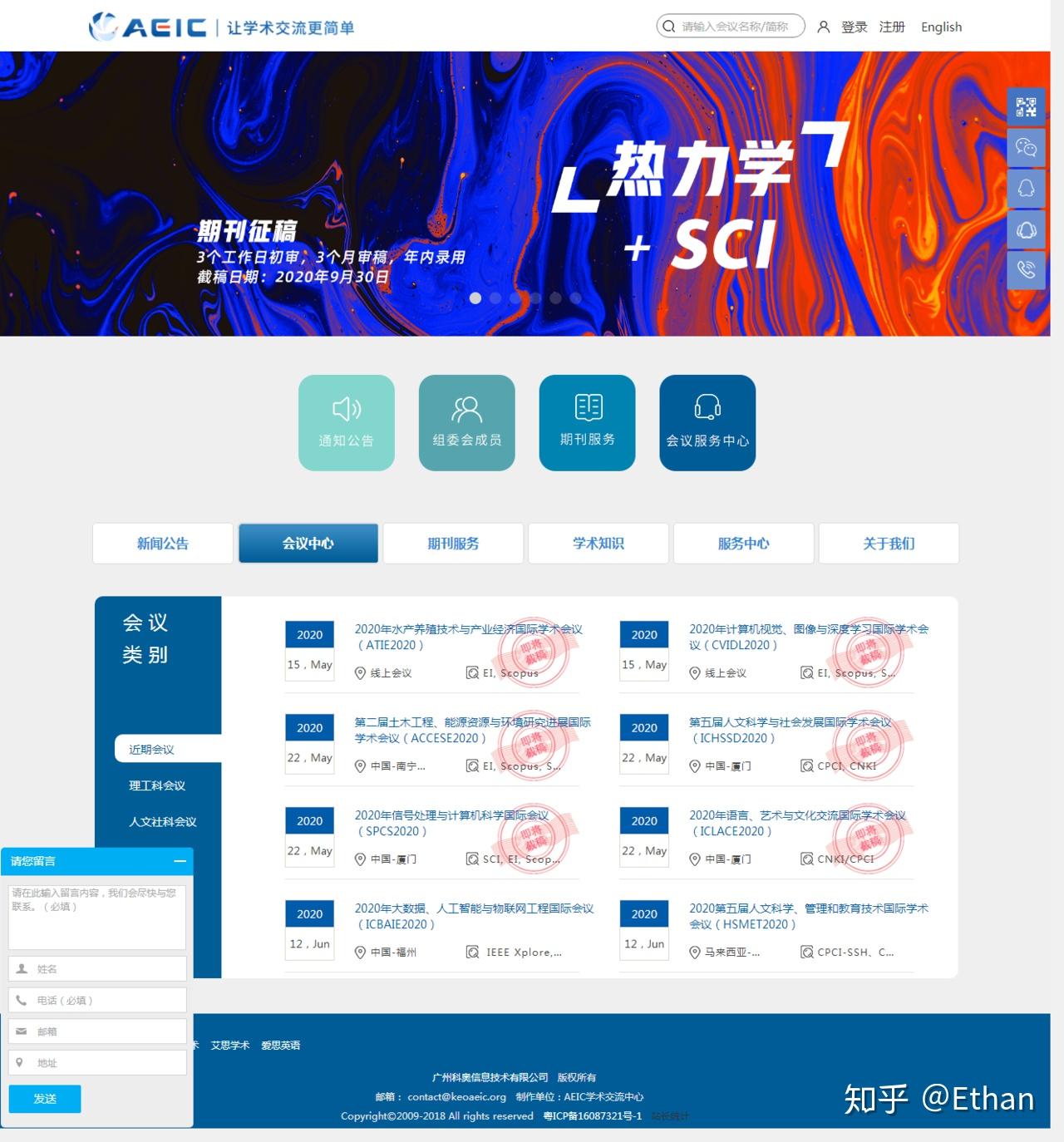 教育部科技发展中心主办的国内学术会议信息交流平台,涵盖学科领域广,更新及时。提供学术会议信息预报、会议分类搜索、会议在线报名、会议论文征集、会议资料发布、会议视频点播、会议同步直播等服务。