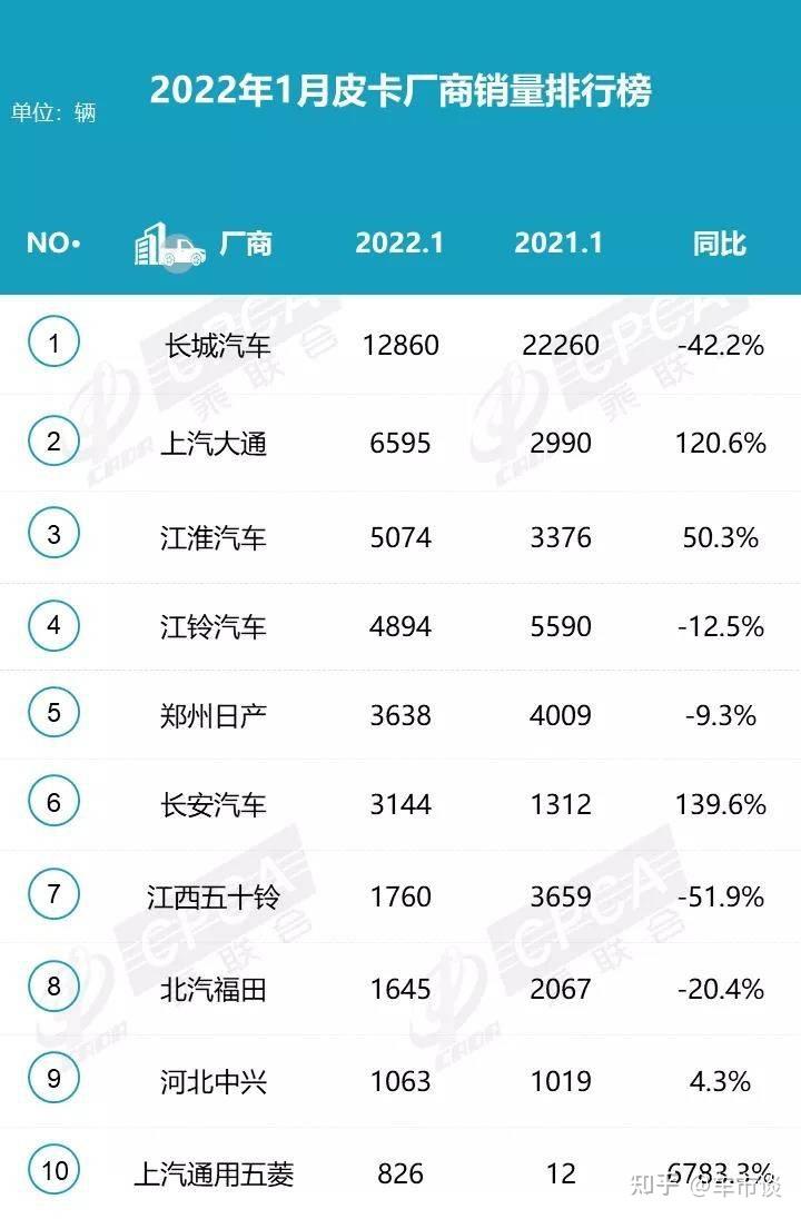在疫情影响以及芯片短缺的大背景下,郑州日产还能如此坚挺实属不易。1月,郑州日产的皮卡销量达3638辆,同比下滑9.3%,环比去年12月的4034辆下降9.8%,排名第5。